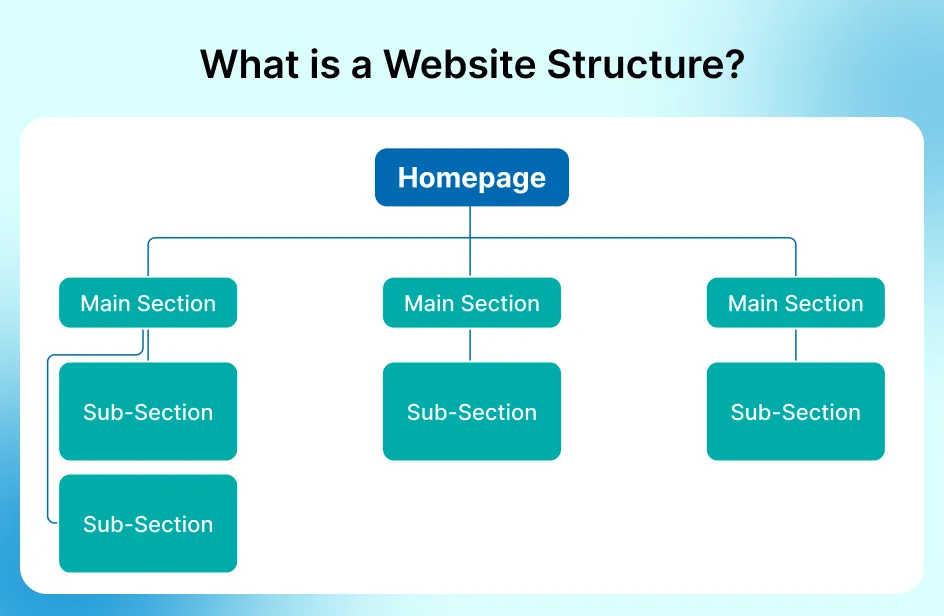 A website structure is the organized framework of your website’s pages, categories, and internal links. It defines how content is grouped, connected, and accessed by both users and search engines.