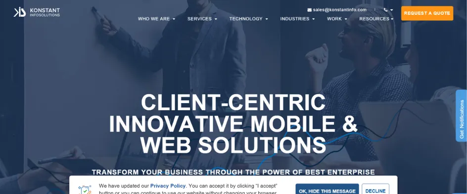 Konstant Infosolutions is a leading web development company in India known for delivering modern, user-focused, and scalable digital solutions. With over two decades of experience, the company has helped startups and enterprises build strong online identities through well-crafted websites and apps.
